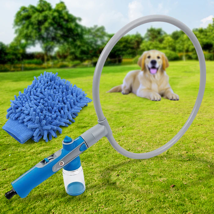 Pet Shower Sprayer, Cat Dog Grooming Bath Massager, Handheld Sprayer, 360 Degree Clean Tool Bath Shower, Ring-Shaped All-Around Woof, for Large Medium Small Dog, Indoor / Outdoor With Microfiber Glove (1 Set)